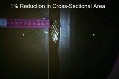The CANTY Pipeline Camera System is set up to view the mud going down the pipe after it rises from the drill pipe. The rugged industrial turn key system mounts to the top of the pipe and allows for non contact measurement of flow and level of the mud. The combination of a CANTY Fiber Optic Light with the digital Ethernet camera allows for optimal view into this dirty dark environment for visual verification of the flow and quality. CANTYVISIONCLIENT™ Software is used to analyze the level and the measurement results can be outputted through 4-20mA or OPC to the control system. This system is a replacement for the Mud Flow Flapper/Paddle style units.